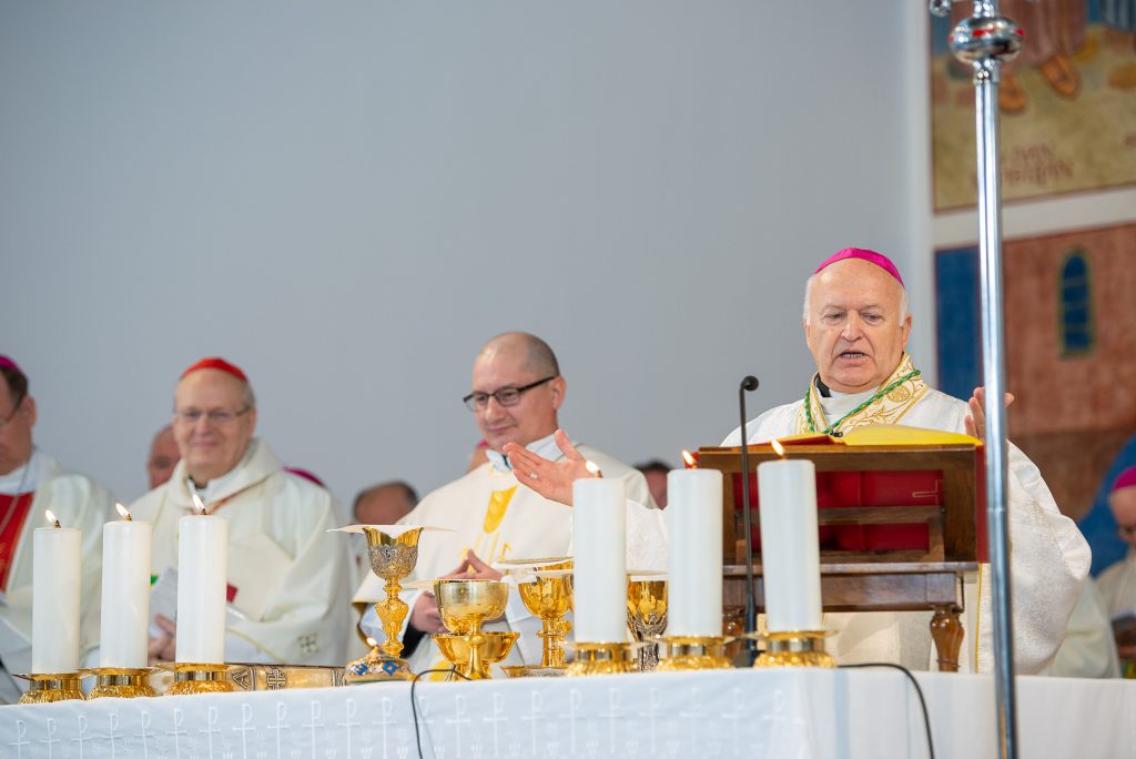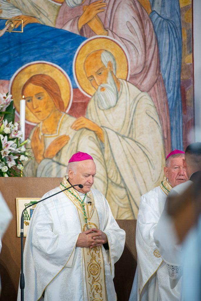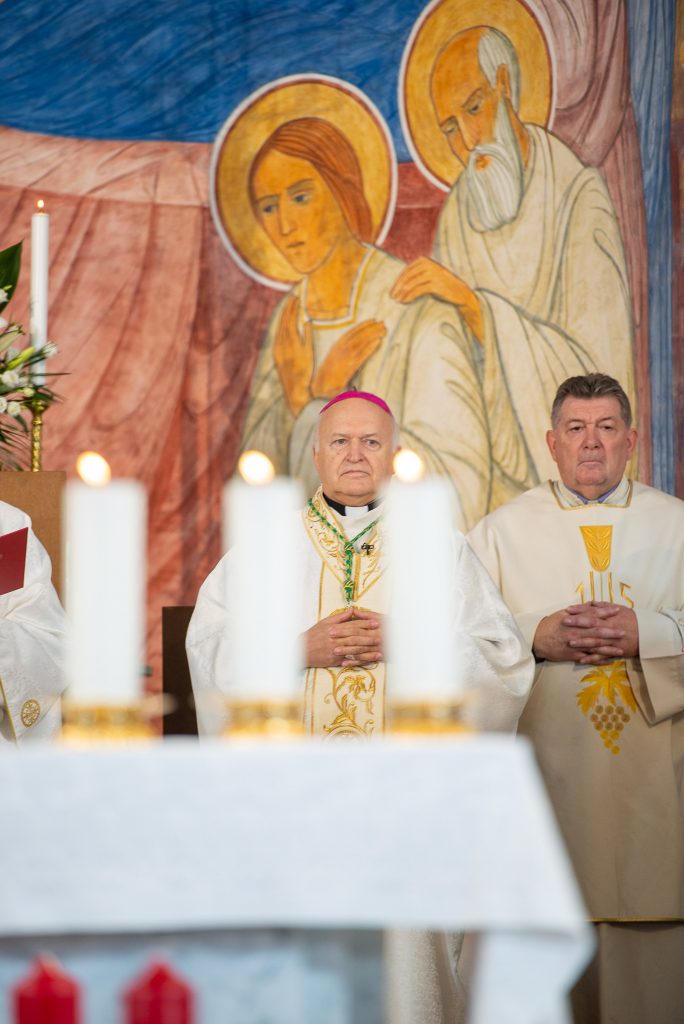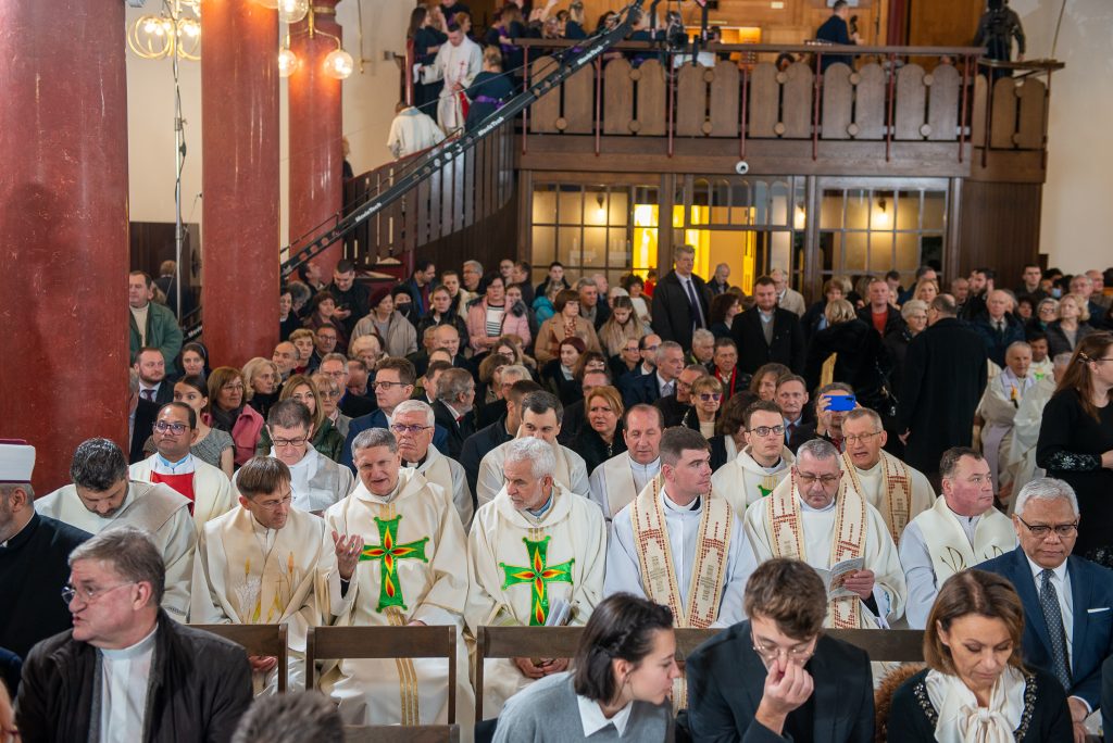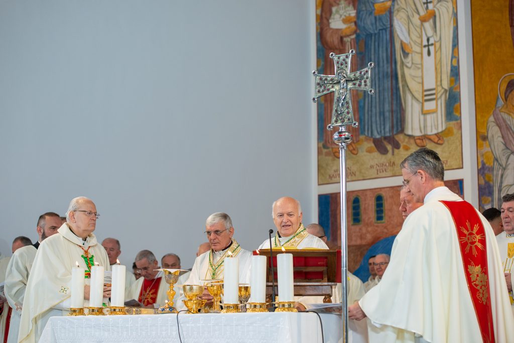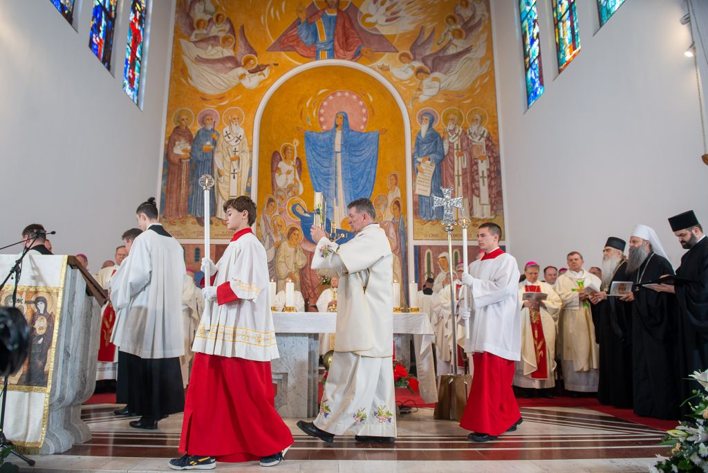 Uz dvojicu nadbiskupa svečanu Euharistiju suslavili su: apostolski nuncij u Republici Srbiji mons. Santo Rocco Gangemi, nadbiskup Ostrogona-Budimpešte kardinal Péter Erdő, predsjednik Vijeća europskih biskupskih konferencija i nadbiskup Vilniusa mons. Guintaras Grušas, predsjednik Hrvatske biskupske konferencije mons. Dražen Kutleša, splitsko-makarski nadbiskup metropolit, predsjednik Biskupske konferencije Bosne i Hercegovine mons. Tomo Vukšić, nadbiskup metropolit vrhbosanski i apostolski upravitelj Vojnog ordinarijata u BiH, te četrdesetak (nad)biskupa zapadnog i istočnog obreda Katoličke Crkve iz Srbije, Hrvatske, Bosne i Hercegovine, Crne Gore, Mađarske, Poljske, Litve, Albanije, Rumunjske i drugih zemalja iz okruženja te osamdeset svećenika.