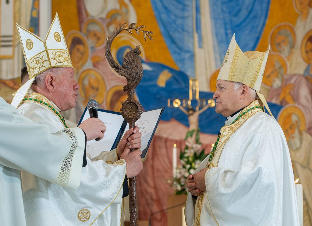 Simbol pastirske službe primio je iz ruku beogradskog nadbiskupa u miru mons. Stanislava Hočevara koji je ovom primopredajom ukazao na kontinuitet mjesne Crkve i biskupa koji su joj na čelu.