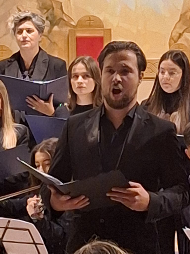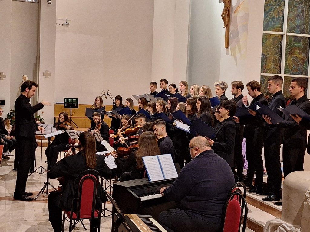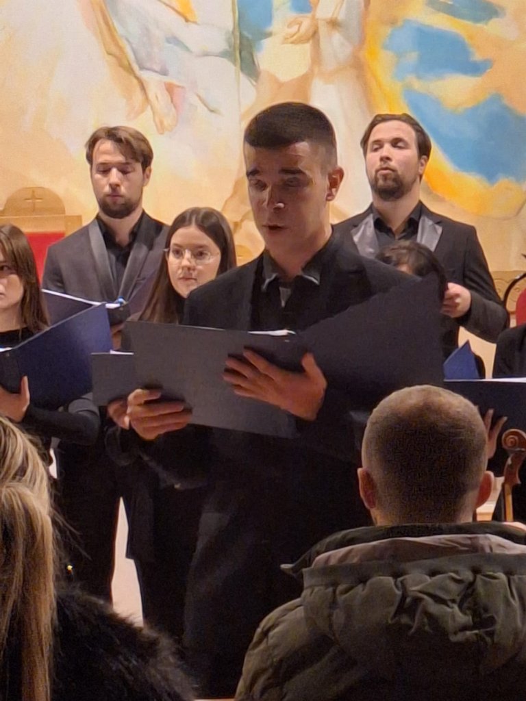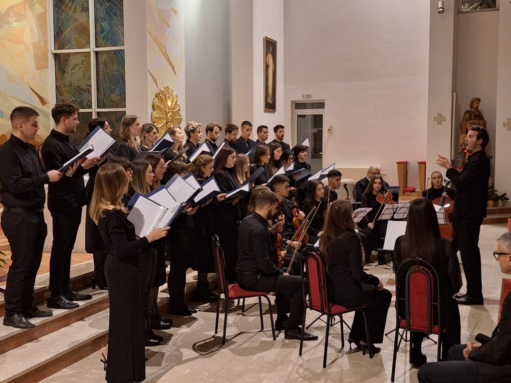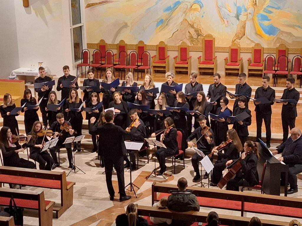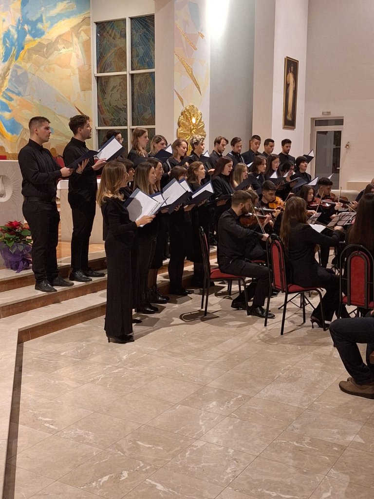Izveli su devet skladbi: gregorijanski napjev „Veni, veni Emanuel“, adventske skladbe „Poslan bi anđel Gabrijel“ i „Zlatnih krila“, „Ave Maria“ (W. Gomez / I. Marčić), „Panis angelicus“ (C. Franck), „Jesus bleibet meine Freude“ (J. S. Bach), „Sagriješismo“ (A. Igrec), „Tollite hostias“ (C. Saint Saens) i „Padaj s neba“ (J. Vallinger).
