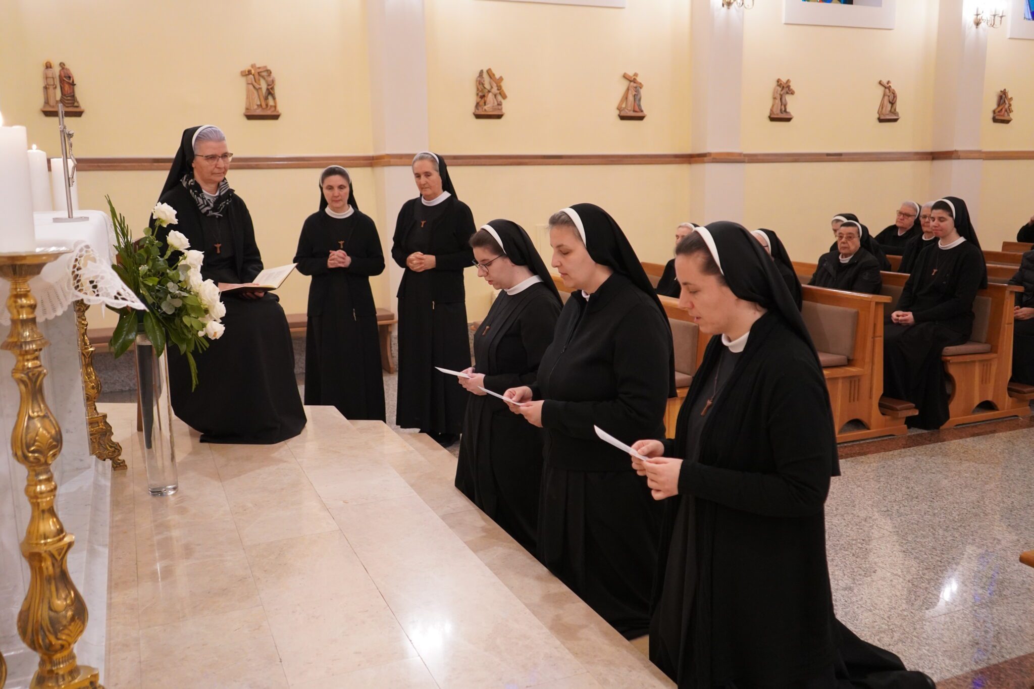 Na blagdan Prikazanja Gospodinova u hramu, 2. veljače 2025., kada Crkva posebnu pozornost posvećuje svećenicima, redovnicima i redovnicama koji su svoj život posvetili Bogu kroz zavjete siromaštva, poslušnosti i čistoće, tri sestre juniorke s. Marija Šimić, s. Marija Rotim i s. Jelena Naletilić, obnovile su privremene redovničke zavjete. Euharistijsko slavlje s obredom obnove zavjeta u kapeli provincijskog središta Školskih sestara franjevki Krista Kralja Provincije Svete Obitelji u Hercegovini predvodio je fra Danko Perutina, gvardijan i župnik župe sv. Petra i Pavla u Mostaru. Njihove je zavjete u ime Crkve primila provincijska predstojnica s. Franka Bagarić u nazočnosti dviju svjedokinja i okupljene zajednice.