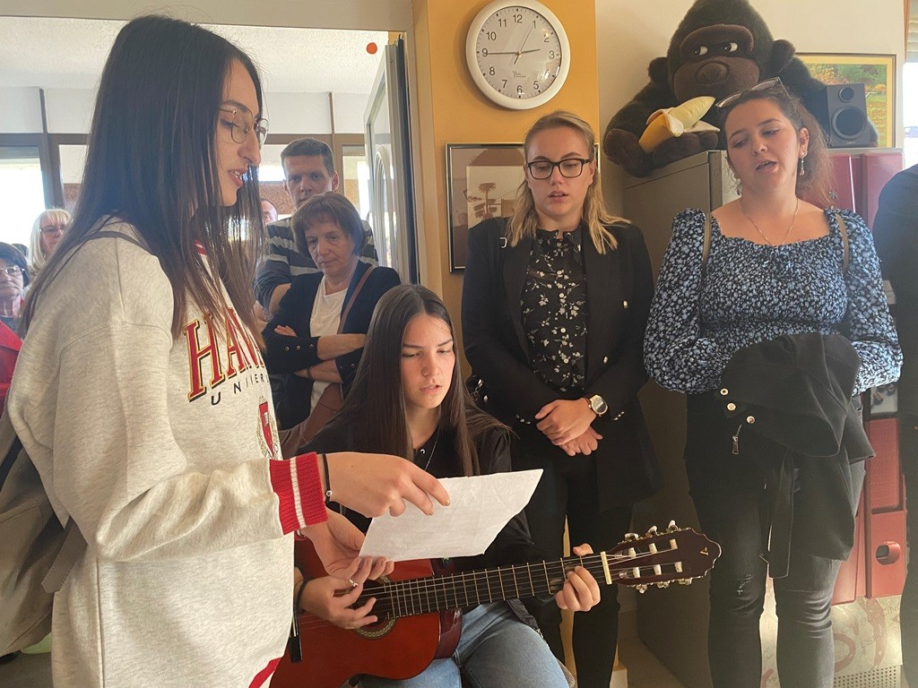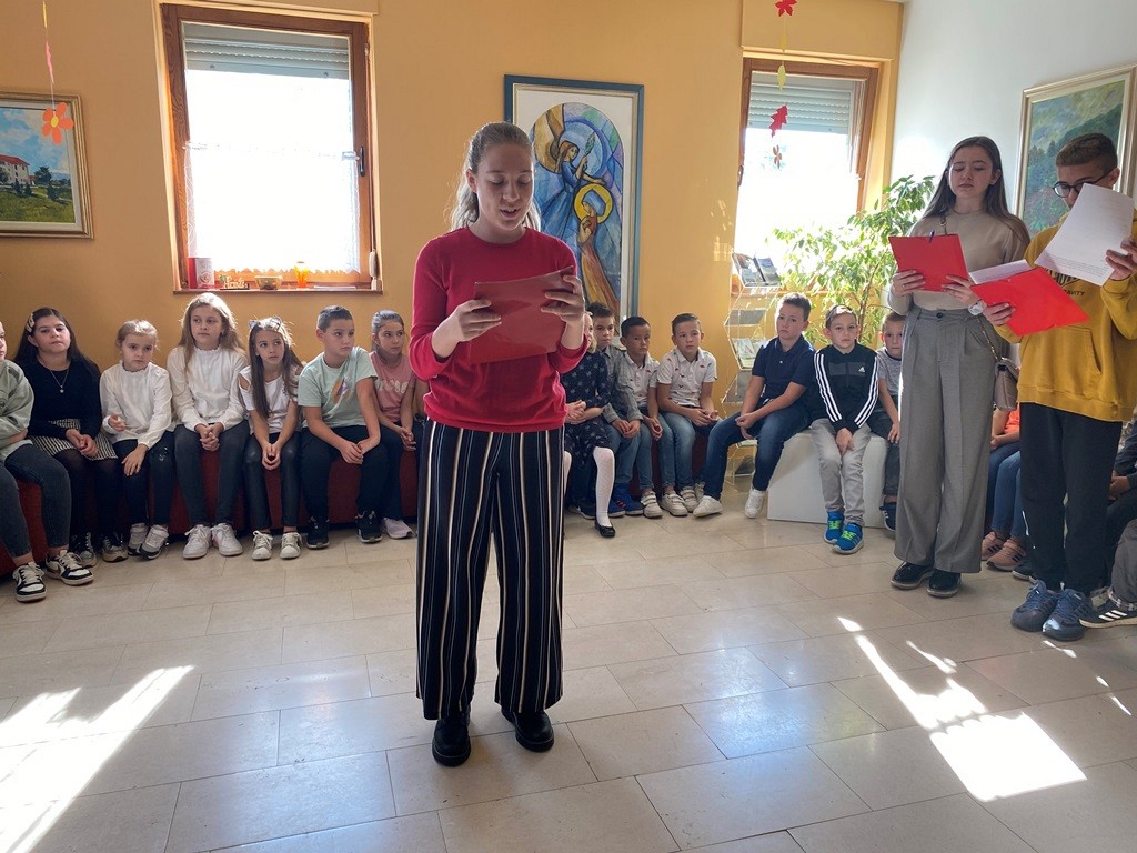 Potom je pročitano pismo sestara iz Haitija, s. Liberije Filipović i s. Ane Uložnik, koje je pročitala Iris Kunštek. Uz riječi zahvalnosti, sestre su misionarke ispripovjedile jednu zgodu, koju prenosimo u cijelosti: „Jednu siromašnu i jako bolesnu bakicu Nicole, našu veliku prijateljicu i moliteljicu, smo odvele u bolnicu jer je imala tešku anemiju. Svaki dan smo je posjećivale, uređivale, kupale, češljale, hranile, te se sa njom molile. Kako je u bolnici bila u sobi sa više drugih pacijentica na liječenju naša briga je posebno zapela za oko jednom gospodinu koji je došao posjeti svoju majku. Vidjele smo da nas krajičkom oka promatra više dana. Kad jedan dan on pita svoju majku tko je ta starija žena, zasigurno neka bogata gospođa koju dvore bijele časne sestre. A naša Nicole je to čula i odmah mu odgovorila da je ona siromašna, da nema nikoga svoga i da živi u Azilu, kući za siromahe u kojoj sestre skrbe za nju i druge ljude u potrebi. Čovjek je ostao šokiran njenom pričom, a i brigom bijelih sestara oko jedne sirotice. Kad smo mi stigle na večer, čovjek nam je prišao i rekao da se divi našoj ljubavi bez računice za nekoga tko nema nikoga svoga. Na to smo mu rekle da mi s puno ljubavi služimo Maloga Isusa koji je skriven u našoj Nicole i da u njoj i mnogim drugima trpi bol, žeđ…“ Sestre su misionarke nadalje priopćile da svakodnevno podijele oko 80 obroka siromasima u mjestu Petit Goave, posjećuju obitelji koje su u velikim potrebama i pomažu školovanje djece. Pri koncu pisma prenijele su veselu vijest, koju prenosimo u cijelosti: „S vama još želimo podijeliti jednu našu veliku radost, a to je da smo prije par mjeseci započele gradnju kuće „Kuća Maloga Isusa“. Radujemo se ovoj kući jer će nam omogućiti lakše i šire misijsko djelovanje u radu sa djecom, mladima, siromasima… i svima onima koji budu tražili duhovnu i materijalnu okrjepu. Radovi su u tijeku i odvijaju se polako prema financijskim mogućnostima…“