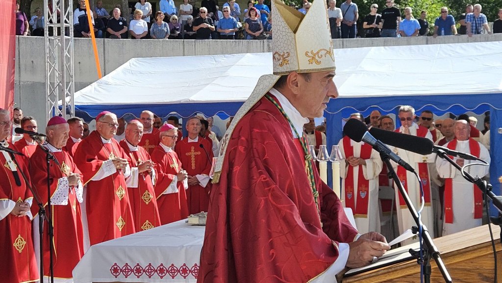 U pozdravnom govoru prije mise biskup Medo potaknuo je „neka krv hrvatskih mučenika, prožeta vjerom i ljubavlju, bude za nas blagoslov i nadahnuće da i mi budemo ljudi Evanđelja u ovom vremenu.“