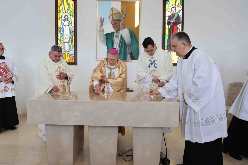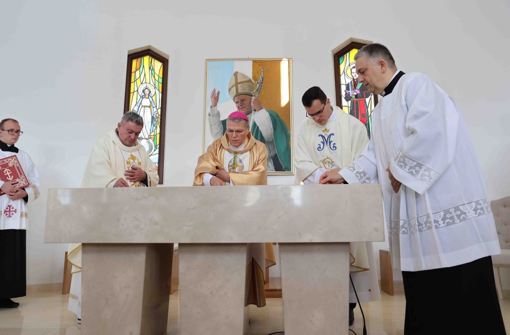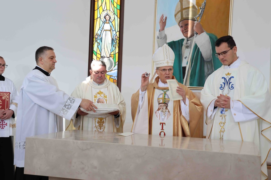 Povelju o gradnji crkve, koja je zajedno s moćima bl. Bulešića ugrađena u oltar pročitala je članica Župnog vijeća Antonija Wurzberg.