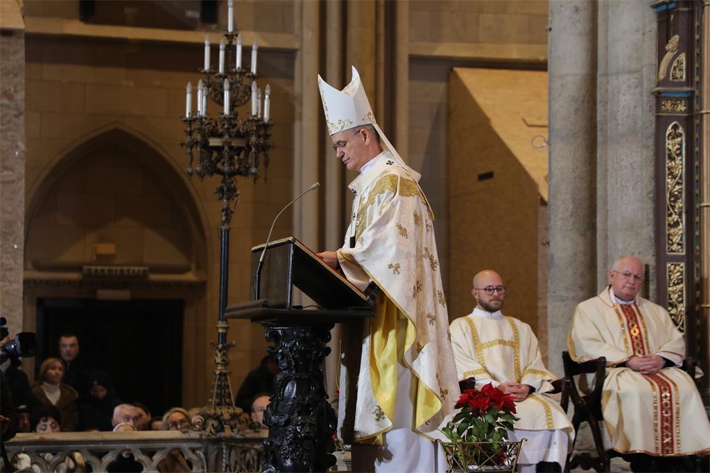 "Zagrebačka prvostolnica usred obnove, ispunjena glasovima vjernika koji slave Boga, postaje danas ikona Crkve i cijeloga hrvatskog naroda, često ranjenoga, ali ne slomljenoga; potresenoga, ali ne napuštenoga; pogođenoga, ali ne poraženoga jer nad nama i dalje sja ono isto Svjetlo koje se rodilo u noći, u štalici, na rubu svijeta", kazao je mons. Kutleša.