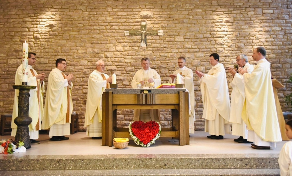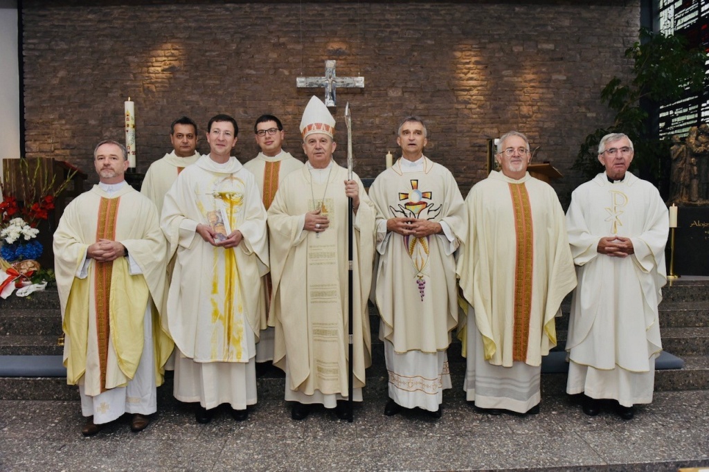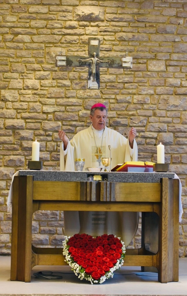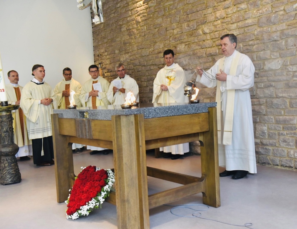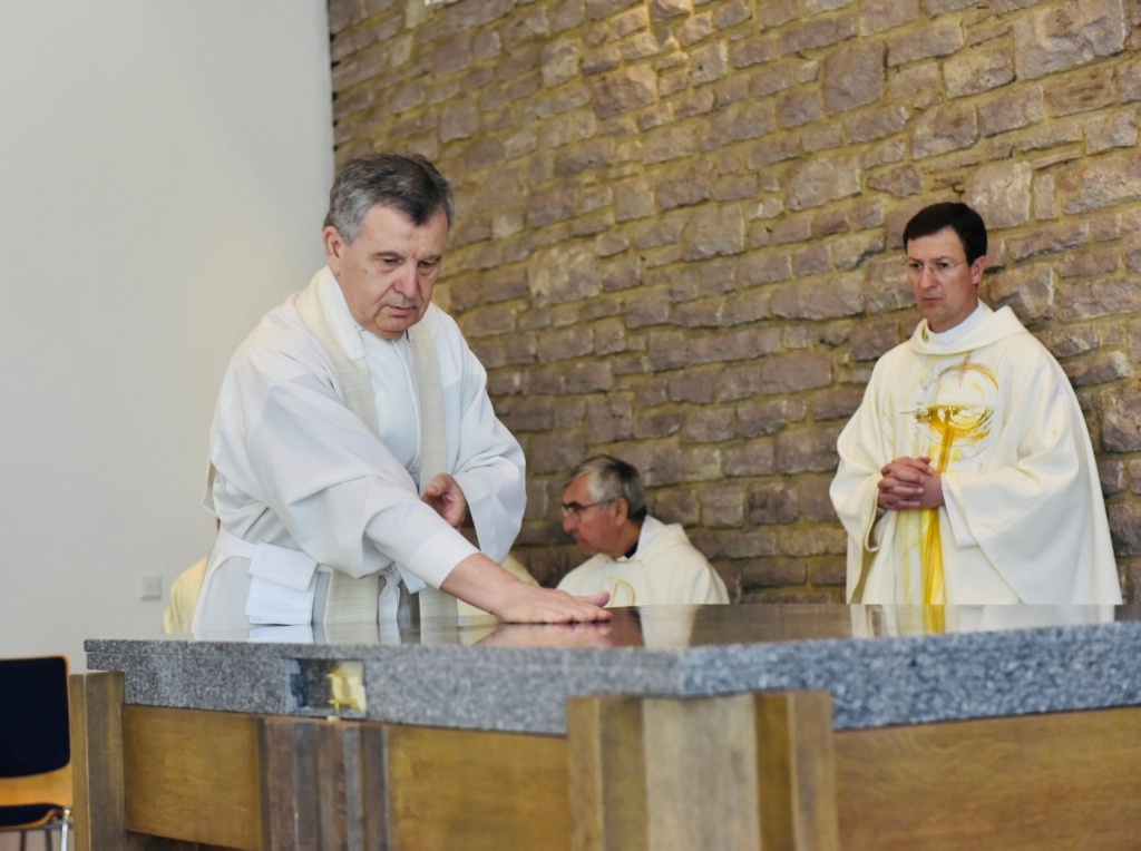 U subotu, 9. srpnja 2022. Hrvatska katolička zajednica u Aalenu, u Njemačkoj, proslavila je obred posvete oltara u kapeli sv. Mihaela, gdje se redovito okupljaju vjernice ove zajednice na vjerska slavlja. Euharistijsko slavlje, uz obred posvete oltara, prevodio je mons. Tomo Vukšić, nadbiskup metropolit vrhbosanski i apostolski administrator Vojnog ordinarijata u BiH, u zajedništvu s dušobrižnikom spomenute zajednice vlč. Vilimom Koretićem, župnikom njemačke župe sv. Marije u Aalenu Wolfgangom Sedlmeierom, kojoj pripada i ova hrvatska katolička zajednica, vlč. Ivicom Komadinom, voditeljem Hrvatskog dušobrižničkog ureda u Njemačkoj, te uz još nekolicinu svećenika. Ceremonijama je ravnao vlč. Branko Koretić, župnik u Ivanić-Gradu. Na zajednici su bili prisutni i vjernici iz susjednih hrvatskih katoličkih zajednica, kao i vjernici Nijemci.