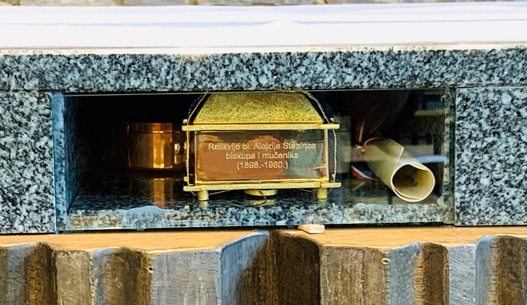Na kraju misnoga slavlja, nadbiskup Tomo blagoslovio je i kip bl. Alojzija Stepinca, djelo akademskog kipara fra Joakima Gregova.