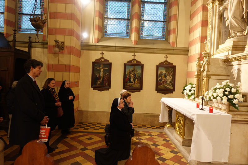Nakon Svete mise vjernici su molili i častili relikvije bl. Karla Habsburškog u zapadnoj lađi katedrale na oltaru Bezgrješnog začeća Blažene Djevice Marije na kojem je uklesan latinski natpis o daru: Franjo Josip I. car i kralj katolicima Bosne 1888. Prije misnoga blagoslova svi zajedno su izmolili sljedeću molitvu:
