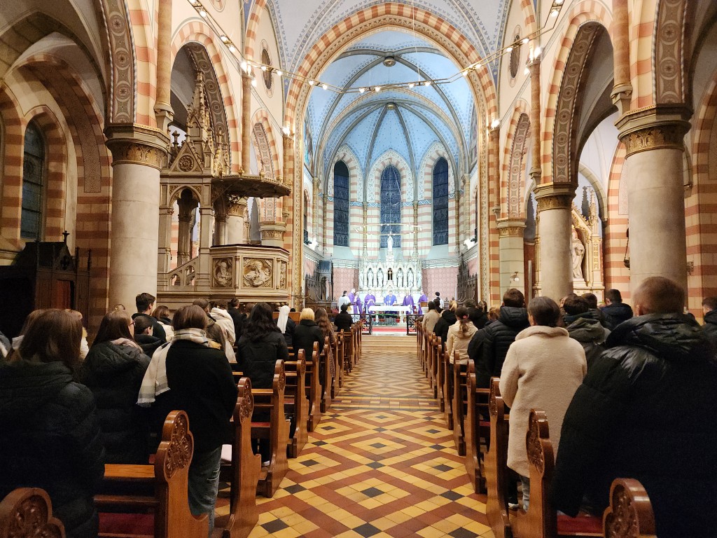 Liturgijsko pjevanje animirao je zbor bogoslova „Stjepan Hadrović“ pod ravnanjem rektora Vrhbosanskog bogoslovnog sjemeništa i profesora liturgike na KBF-u preč. Ivana Rake. Bogoslovi su također asistirali kod oltara te čitali misno čitanje i molitvu vjernika. Sestra Kćeri Božje ljubavi Zrinka Barišić, sakristanka, sve je pripremila za misno slavlje na koje su, osim njezinih susestara, došle također sestre Služavke Malog Isusa predvođene provincijalnom glavaricom s. M. Anom Marijom Kesten i milosrdnice sv. Vinka Paulskog. Članovima katedralne župne zajednice i drugim vjernicima pridružili su se srednjoškolci i srednjoškolke iz internata KŠC-a „Sv. Josip“, studenti s raznih sarajevskih učilišta i djelatnici u raznim ustanovama. Sve njih je na ulazu pozdravio župljanin Vinko Potocki nakon što je došao prije svih i otvorio jubilejska katedralna vrata. Prije i tijekom svete mise bila je prigoda pristupiti sakramentu pomirenja.