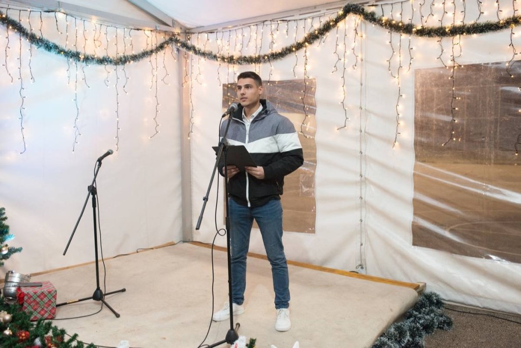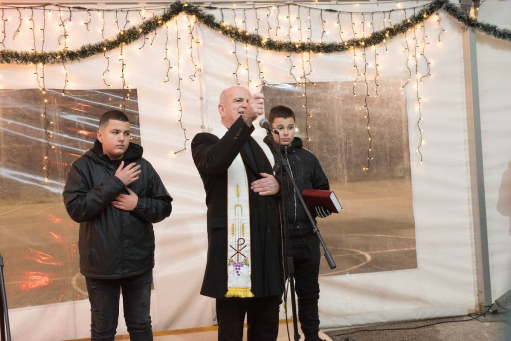 Manifestacija je započela u 19.30 sati, a voditelj programa David Milišić najavio je bogat program adventske večeri, te pozvao bjelopoljskog župnika don Rajka da uputi prigodnu riječ i blagoslov.