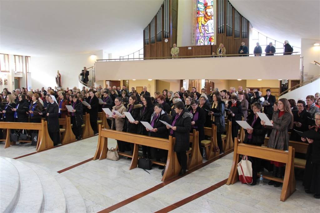 U prigodnoj propovijedi, osvrćući se na Evanđelje dana, prispodobu o udovici i nepravednome sucu, biskup je predstavio lik udovice, njezinu upornost i vjeru ističući da „Isus ovom udovicom opisuje i nas vjernike koji ne prestajemo vjerovati i biti Božji“ te je pozvao pjevače da ovaj evanđeoski tekst primijene na svoj život i iskazano zajedništvo. „Usporedno s udovicom iz Evanđelja, svaka vaša proba jest kucanje i traženje“, rekao je biskup te nastavio: „Kad god pjevate, vi otvarate vrata neba, ne samo vlastitoga života, nego i svoje župne zajednice. Kad marljivo vježbate, vi ste poput udovice koja svaki dan kuca na Božja vrata; kad skladno pjevate, svjedočite da je Božja ljubav jača od naše različitosti.“