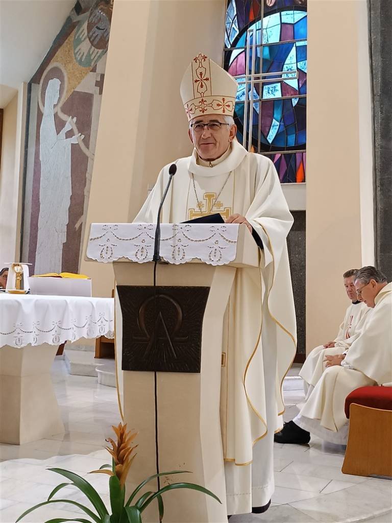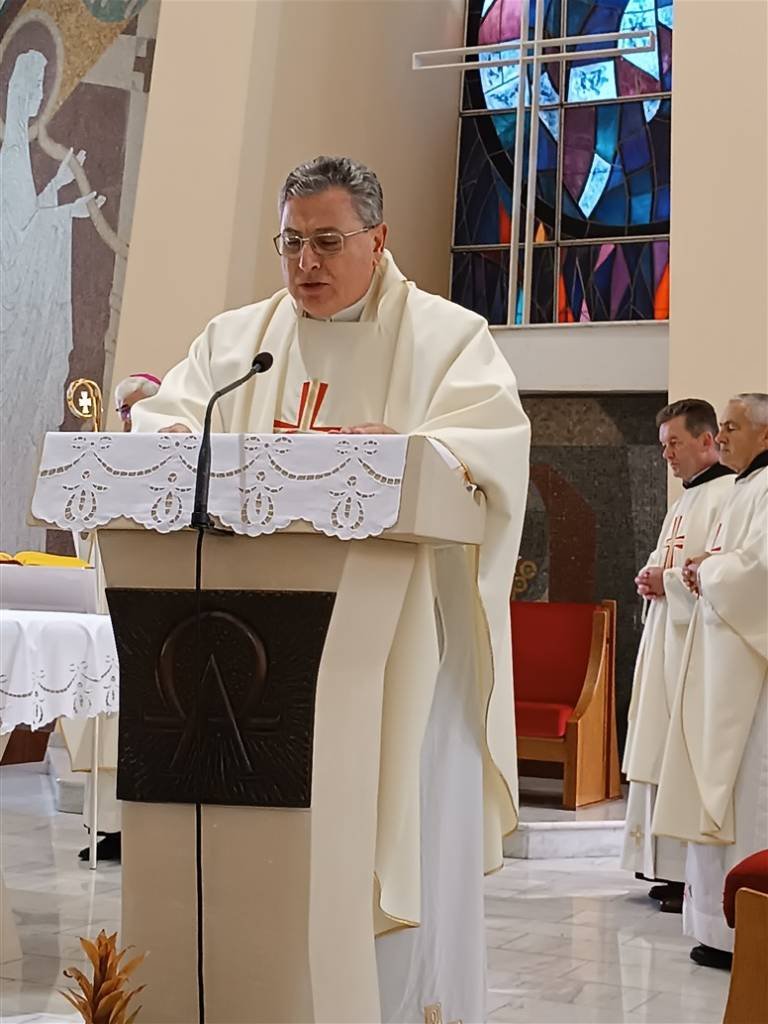 Ohrabrujući sve okupljene, izrazio je želju da ovaj dan bude onaj „koji hrani našu vjeru i utvrđuje našu nadu“. Biskup se prisjetio i svojih prvih riječi koje je uputio vjernicima Banjolučke biskupije za koju je tada kazao da je „živa zajednica vjere“ te primijetio kako se to očituje i pod ovim misnim slavljem. „Dođite danas u katedralu sv. Bonaventure pa čujte glas koji slavi Boga, koji veliča Boga, koji se Bogu moli, koji od Boga i za Boga živi, koji na ono pitanje 'zašto smo na svijetu', iskreno odgovara 'na svijetu smo zato da Boga upoznamo, da ga uzljubimo, da mu služimo i tako sretno u nebo dođemo'“, rekao je biskup.