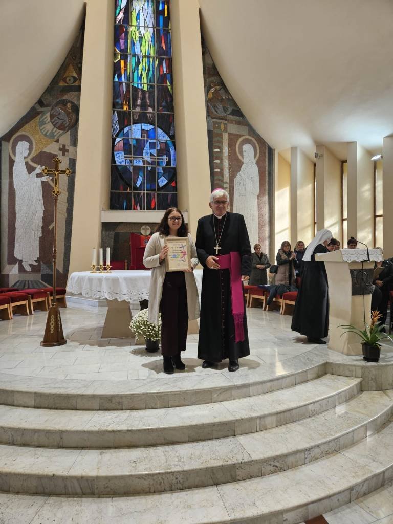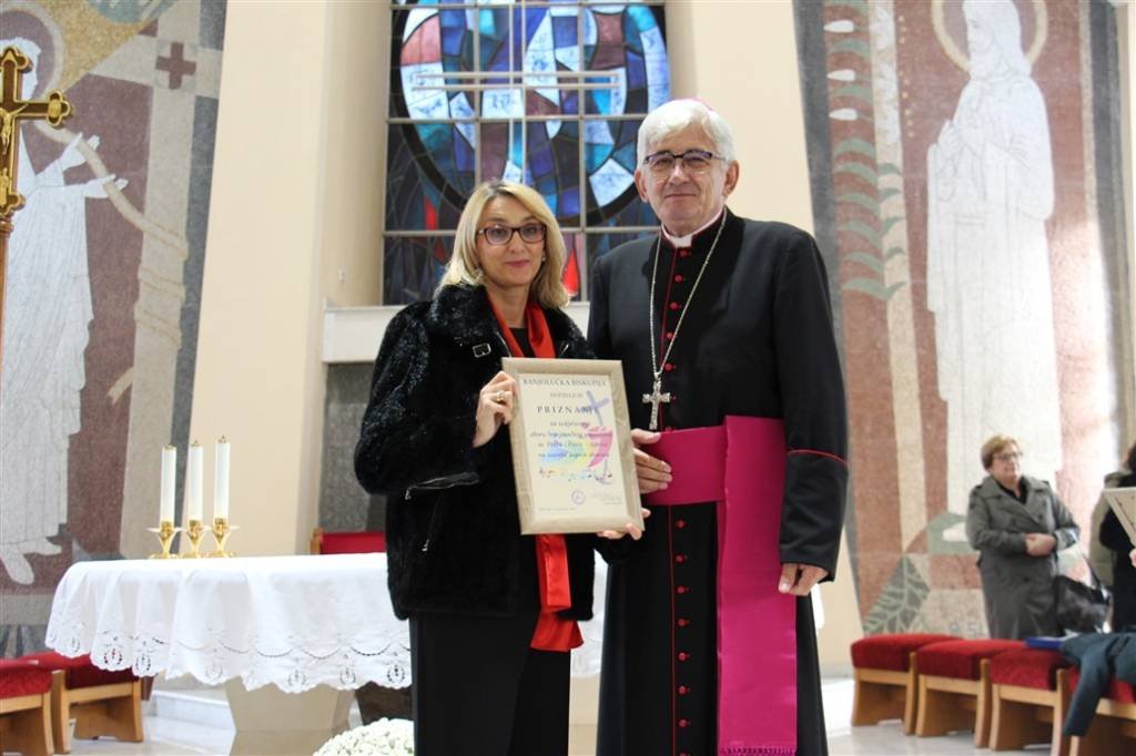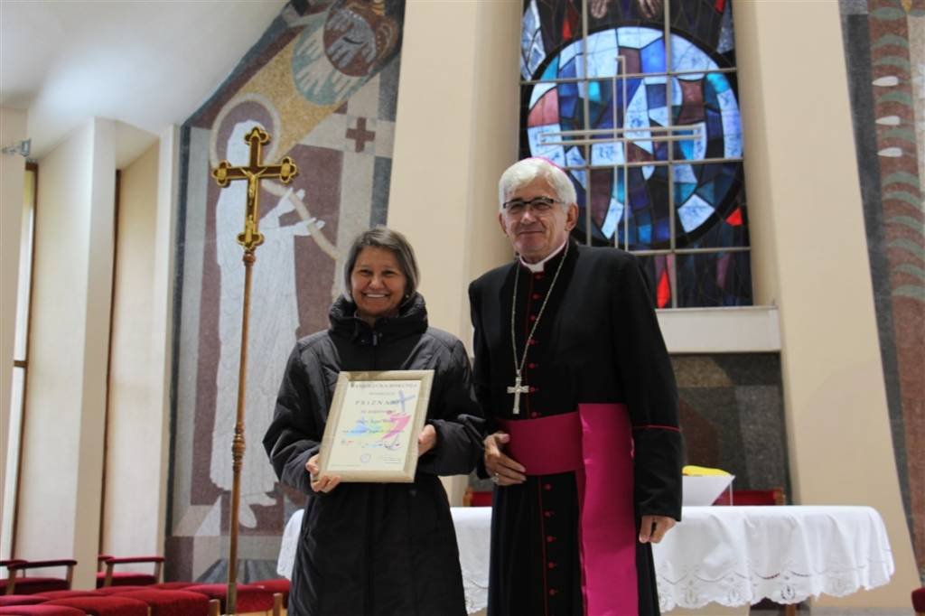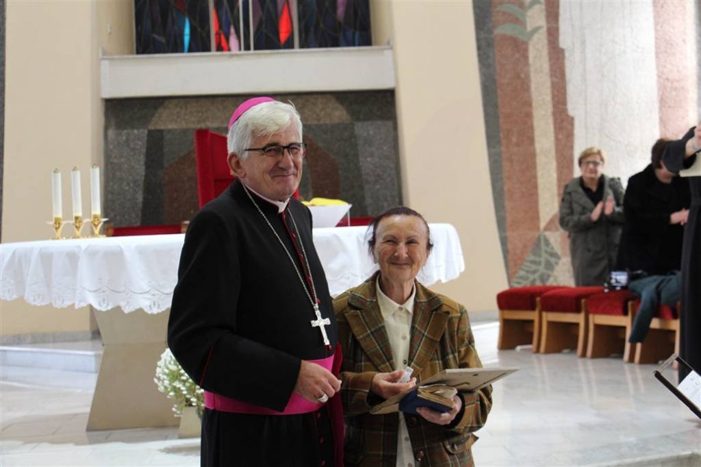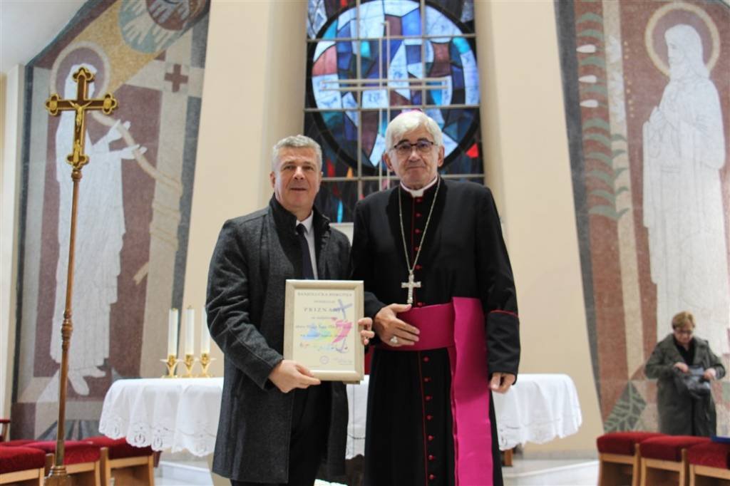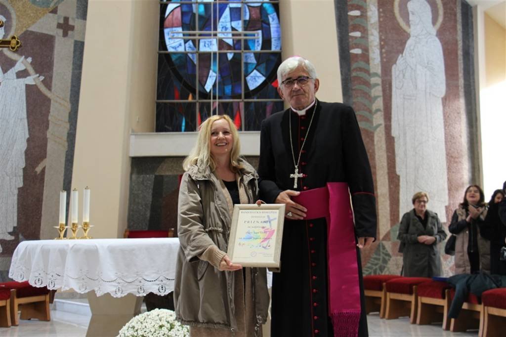 Na kraju je biskup Željko svim zborovima podijelio priznanja te zahvalio Povjerenstvu za crkvenu glazbu, kao i voditeljima zborova i pjevačima za trud koji ulažu u njegovanju liturgijskog pjevanja. Također, posebno priznanje za dugogodišnje njegovanje crkvenog pjevanja primile su „počimalje“ Milka Begić iz župe Ravska i Ružica Remić iz župe Ljubija.