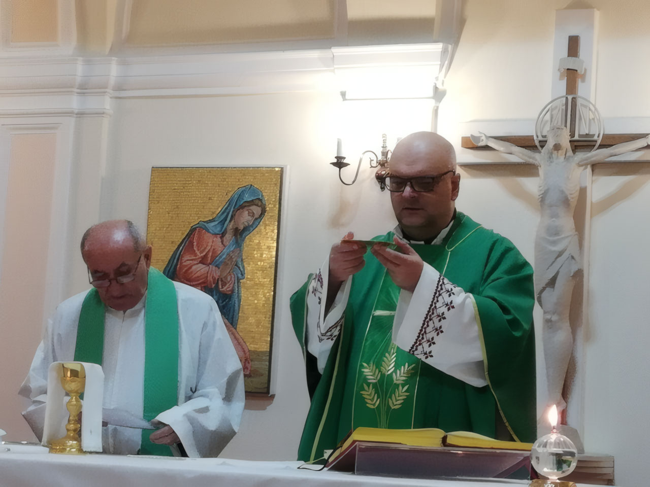 Euharistijsko slavlje, također je predslavio voditelj duhovne obnove vlč. Mario u suslavlju koordinatora mjesečnih duhovnih obnova i duhovnika bogoslova vlč. Marka Hrskanovića.