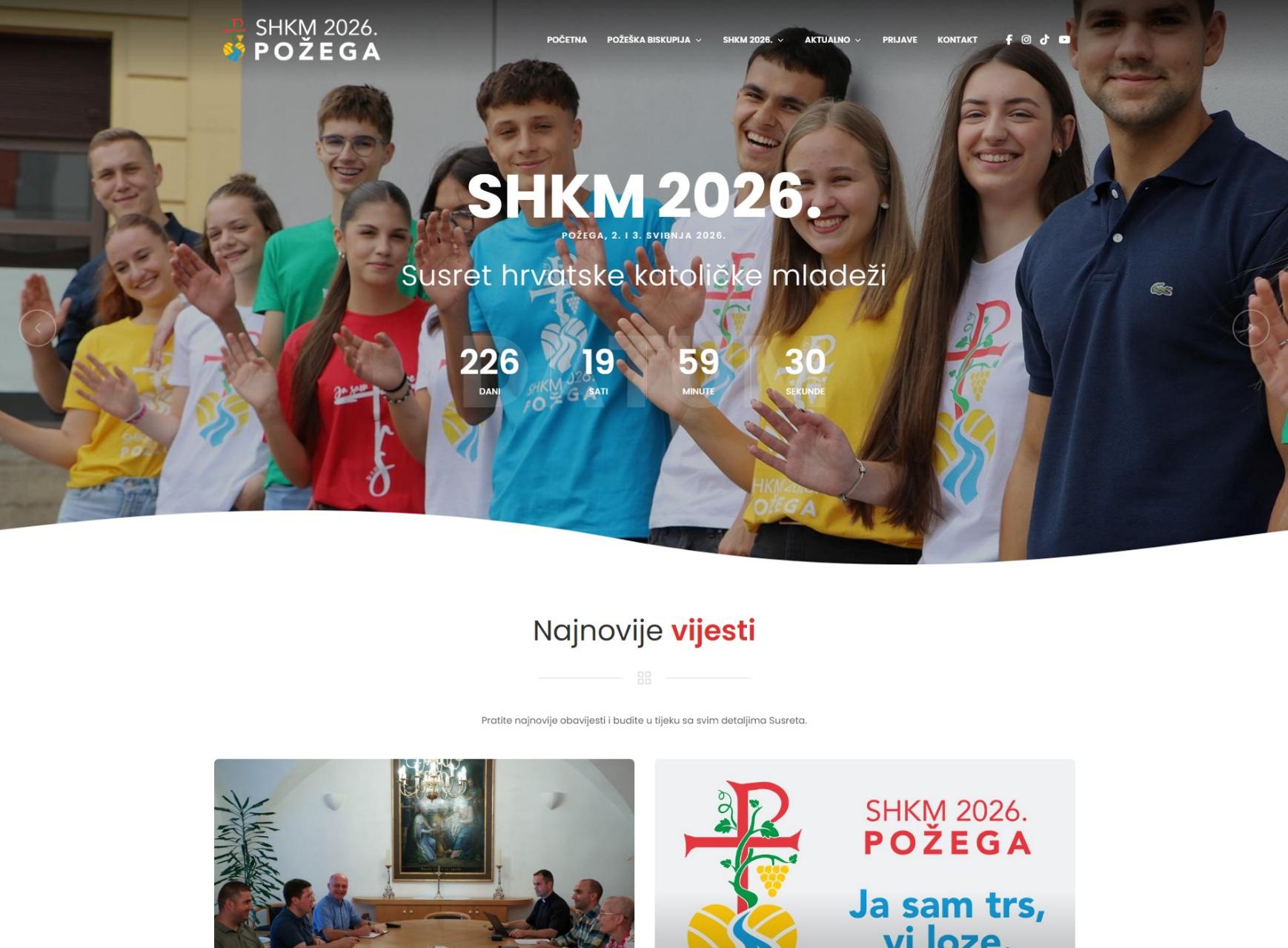 Na Biskupijskom danu u Požegi 20. rujna službeno je predstavljena mrežna stranica predstojećega Susreta hrvatske katoličke mladeži (SHKM), koji će se održati 2. i 3. svibnja 2026. u Požegi, izvijestio je Ured za odnose s javnošću, pisanu baštinu i tisak Požeške biskupije, prenijela je IKA.