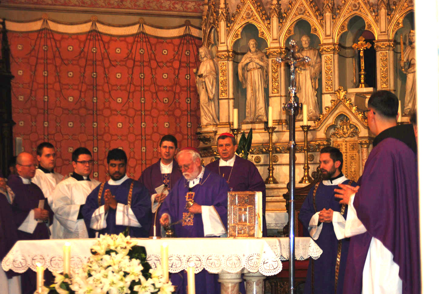 Con la stessa intenzione in questa Cattedrale hanno pregato e pregano molti, e tra questi anche due successori dell’apostolo Pietro. San Giovanni Paolo II ha pregato qui nel 1997 e di questo felice avvenimento testimonia la lucerna della pace, portata da Lui, che da allora si trova nel presbiterio della Cattedrale. E felicemente regnante papa Francesco, come il nunzio e testimone della pace, ci ha visitati nell’anno 2015.
