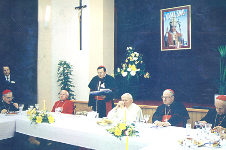 Nakon molitve Večernje u sarajevskoj katedrali, Sveti Otac Ivan Pavao II. pohodio je Vrhbosansku katoličku bogosloviju i tu se susreo sa svim kardinalima, nadbiskupima i biskupima koji su sudjelovali u ovom Papinu pastirskom pohodu. Nadbiskup vrhbosanski kardinal Vinko Puljić uputio je Svetom Ocu sljedeće riječi zahvalnosti: