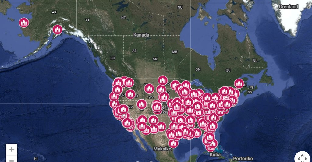 Veliki broj napada zbio se u gradovima New York City (47); metropolitansko područja Los Angelesa (27); Philadelphia (16); Denver (15); Portland, Oregon (15); San Francisco/Bay Area (14); Boston (11); Washington, D.C. (11); Pittsburgh (10); Seattle (8); Miami/Fort Lauderdale (8); Chicago (8); Omaha (7); Houston (7); Cincinnati (6); Louisville (6) i San Antonio (6). Pri tome su neke od crkava bile napadnute više puta.