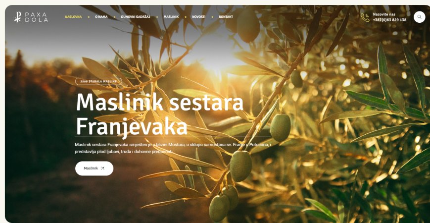 Na adresi www.paxa-dola.com Školske sestre franjevke pokrenule su internetsku stranicu na kojoj će se, između ostaloga, moći pratiti novosti vezane uz sestarski maslinik te duhovni centar „Biskup fra Paškal Buconjić“ u Bijelom Polju odnosno Potocima pokraj Mostara, objavljeno je na stranici ŠSF KK Provincije Svete Obitelji.