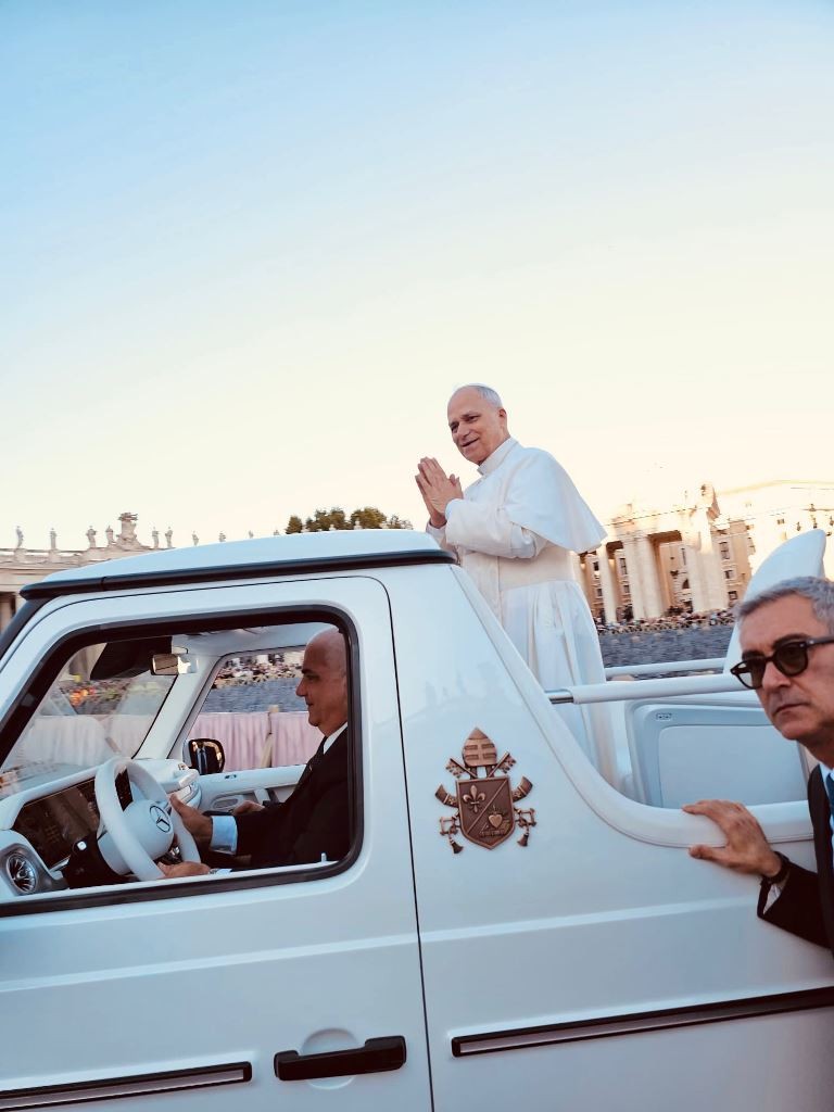 Prošavši sigurnosne kontrole hodočasnici iz Vrhbosanske nadbiskupije su se smjestili tik uz ogradu nadajući se tako izbliza vidjeti papu Lava XIV. kada bude prolazio papamobilom. I onda je stigao taj dugo očekivani trenutak – Papa je stigao na Trg svetog Petra i izazvao gromoglasni aplauz i oduševljenje svih prisutnih. Svi su zdušno mahali rukama i dovikivali Papi da ga vole, da mole za njega te se preporučivali u njegove molitve. Papa se srdačno smiješio i uzvraćao pozdrave. Zatim je Papa prisutne nad/biskupe Crkve u Hrvata i sve hodočasnike pozdravio na hrvatskom jeziku s „Hvaljen Isus et Marija!“ te im uputio svoju pastirsku riječ. Papa je svim hodočasnicima izrazio dobrodošlicu te rekao kako je brojna prisutnost hrvatskih hodočasnika znak koji govori o živosti vjere hrvatskog naroda koji je tijekom stoljeća uvijek ostao čvrsto u zajedništvu s Crkvom, vjeran Nasljedniku apostola Petra. „Potičem vas da uvijek držite pogled usmjeren prema Isusu, Dobrom Pastiru, koji vas vodi i prati te da dopustite da vas s povjerenjem i poslušnošću On usmjerava. Ne zaboravite da vjera raste i da se jača onda kada se dijeli: stoga, pozivam vas da s radošću prenesete svojoj djeci i novim generacijama kršćanske vrijednosti koje su oblikovale vašu dugu povijest i vašu kulturu. Na ovaj način nastavit ćete biti kvasac mira, dobra i nade u svijetu rastrganom nasiljem i ratovima, kojega vi također poznajete iz vaše povijesti. Neka vas Gospodin blagoslovi, Blažena Djevica Marija, koju vi zazivate kao Najvjernija odvjetnica Hrvatske, neka vas čuva pod svojim plaštem i prati u svakodnevnom hodu. Vama ovdje prisutnima, vašim obiteljima, svim vašim dragima kao i svem hrvatskom narodu od srca udjeljujem Apostolski blagoslov, znak Papine bliskosti i pažnje prema svakome od vas“, završio je svoj govor Sveti Otac.