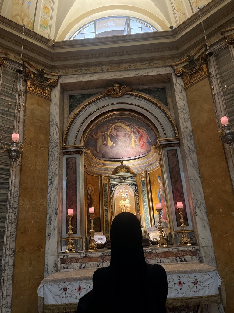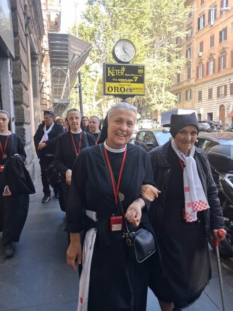 Ipak, dio programa za šest sestara; s. Ljilju, s. Piju, s. Nikolinu, s. Ritu, s. Mihaelu i s. Viktoriju, imao je drugačiji tijek. One su se, uz prethodnu suglasnost voditelja hodočasnika, izdvojile kako bi posjetile svoje tri sestre koje djeluju u Papinskom zavodu Santa Maria dell'Anima u Rimu. Taj susret bio je izraz povezanosti, međusobne podrške i osnaživanja u zajedničkom poslanju. U prostorima zavoda, smještenog u središtu Rima, sestre su provele vrijeme u razgovoru i razmjeni iskustava. Susret je u sebi nosio duhovnu snagu blizine i osjećaj da zajedništvo nadilazi udaljenost i granice.