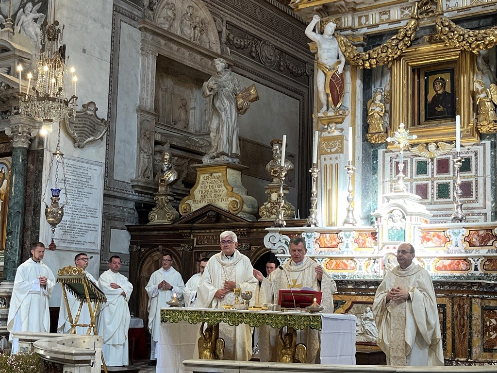 Središnji duhovni trenutak dana bila je sveta Misa u 14:00 sati, slavljena u bazilici Santa Maria Aracoeli, gdje se nalazi grob Katarine Kosače, posljednje bosanske kraljice. Euharistijsko slavlje je predvodio vrhbosanski nadbiskup mons. Tomo Vukšić, a propovijedao je banjolučki biskup mons. Željko Majić. U ozračju sabranosti i zahvalnosti, hodočasnici su povjerili Bogu svoje nakane, domovinu i sve koji su im povjereni. Misa je bila snažan podsjetnik na duhovne korjene, baštinu i povezanost s poviješću vlastitog naroda.