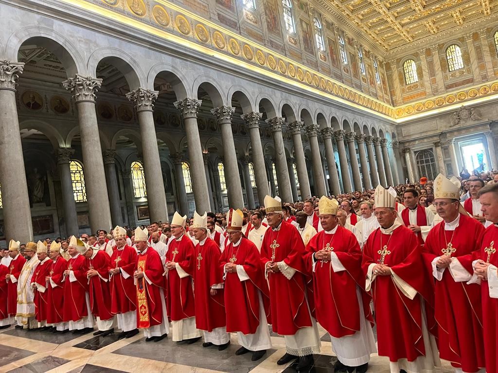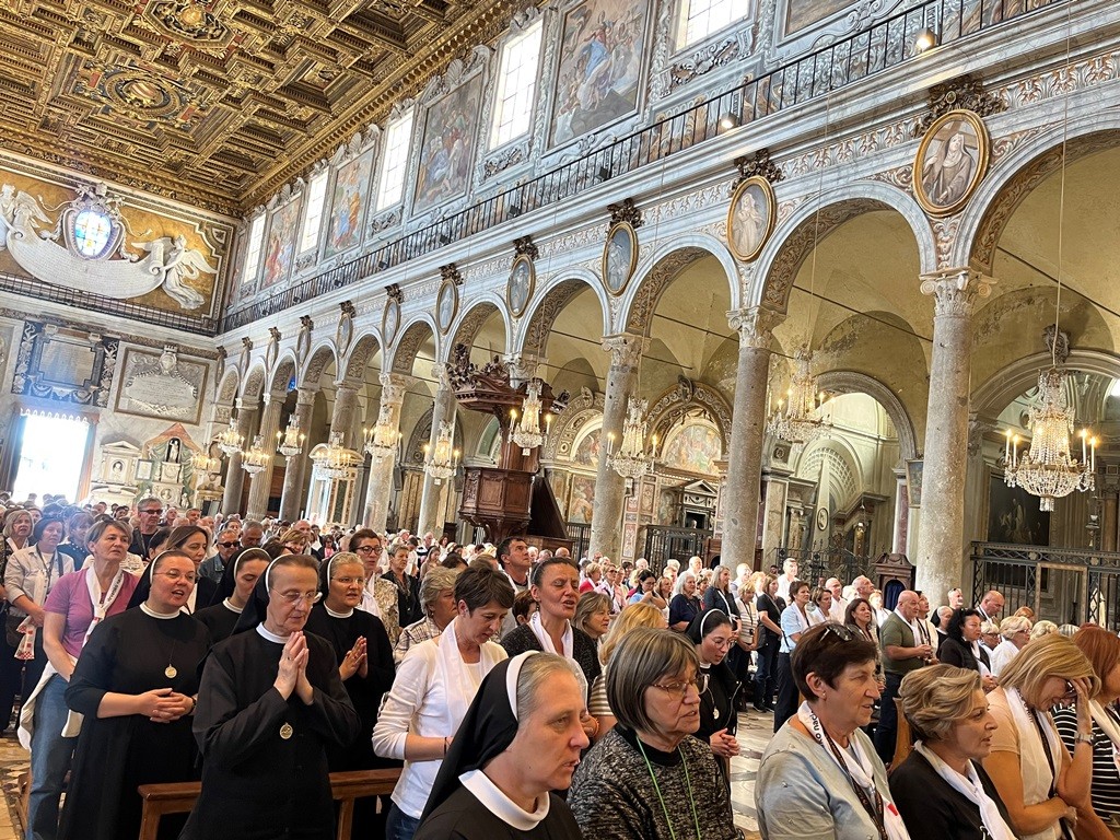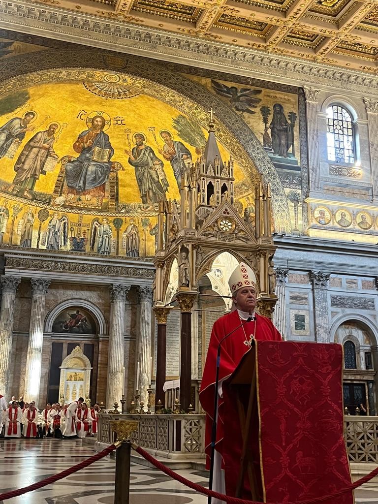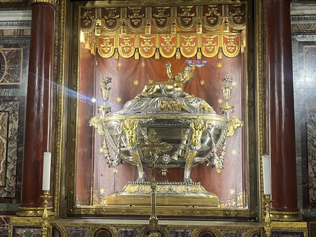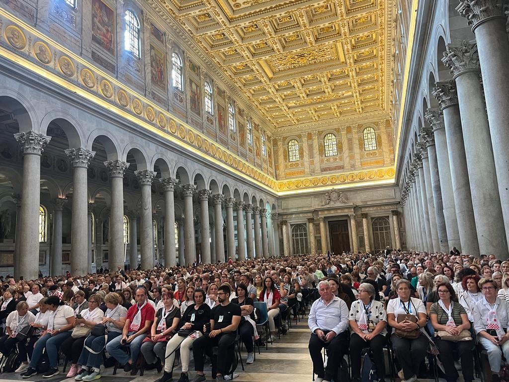 Četvrti dan jubilarnog hodočašća nade započeo je posjetom veličanstvenoj bazilici Santa Maria Maggiore, jednoj od četiri papinske bazilike u Rimu. Prema predaji, sagrađena je na mjestu gdje je 5. kolovoza pao snijeg nakon Gospina viđenja s porukom: „Tamo gdje vidite snijeg, izgradite mi crkvu.“ Ova je bazilika prepoznatljiva po svom tornju, jedinom među rimskim papinskim bazilikama. U njoj se čuva dio relikvija betlehemskih jaslica, kao i čuvena ikona Salus Populi Romani – „Spas naroda rimskog“ kojoj je papa Franjo tradicionalno donosio cvijet prije i nakon svojih apostolskih putovanja. Tijekom srednjeg vijeka vjernici su se ovoj ikoni utjecali za zaštitu od kuge. U ovoj je bazilici naš otac utemeljitelj sluga Božji Josip Stadler slavio svoju mladu misu sekundiciju, a blaženi Alojzije Stepinac je u njoj slavio svoju mladu misu, što našem hodočašću daje i poseban duhovni pečat.