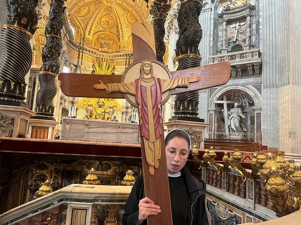 U petak, 10 listopada 2025. u 7 sati ujutro krenuli su hodočasnici prema bazilici sv. Petra u Vatikan. Ovo je treći milosni odlazak ove hodočasničke grupe u baziliku sv. Petra. Ovog puta je na čelu hodočasničke povorke išao jubilarni hodočasnički križ. Kod preuzimanja jubilarnog križa hodočasnici su izmolili jubilarnu molitvu i vjerovanje, te na nakane Svetog Oca. Potom je uslijedio polagani hod za Isusovim križem razmatrajući Isusovu muku i ljubav kojom nas je ljubio. U jednom trenutku hodočašća prema bazilici sv. Petra svatko je imao mogućnost primiti jubilarni križ u ruke primajući tako na simboličan način u svoj život Isusa i njegov način života. Slijedio je prolazak kroz sveta vrata kod kojih se kratko zastalo u molitvi i sjećanju na Isusove rijeci “Ja sam vrata. Kroza me tko uđe, spasit će se”. Kod otvorenih svetih vrata sestre su posebno molile za otvorenost srca svake sestre prema Bogu, Crkvi, Družbi, sestrama i svakom čovjeku. Kristovo otvaranje vrata i srca snažno je odjekivalo i pozivalo na otvorenost, predanje i strpljivo iščekivanje. S jubilarnim križem u ruci hodočasnici su došli do groba sv. Petra gdje su obnovili svoju vjeru i predali jubilarni križ u kojega je sedam sestara SMI Sarajevske provincije ugradilo život provincije i svake sestre. Kod groba sv. Petra sestre su se sjetile da je otac utemeljitelj sluga Božji Josip Stadler u kripti sv. Petra u Vatikanskoj bazilici slavio svoju mladu misu. Stoga su zahvalile Bogu za sve što je Crkvi Vrhbosanskoj darovao po nadbiskupu Stadleru, te molile za njegovo proglašenje blaženim. Uslijedili su trenuci molitve i razgledanja znamenitosti bazilike. Nezaobilazno je bilo pomoliti se kod kipa sv. Petra i u duhu ga promatrati prije Isusova zahvata i poslije susreta s Isusom. Prolazeći pokraj Michelangelovog Pietà, kao prave Stadlerove duhovne kćeri sestre su se prisjetile samostana Doloroza u Čardaku te zamolile žalosnu Gospu za što skorije proglašenje blaženim našeg oca utemeljitelja, sluge Božjega Josipa Stadlera. Potom su zastale kod groba sv. Ivana Pavla II. i kod groba pape Benedikta XVI., moleći sestrama cijele Družbe i provincije žar i ljubav koju su ova dvojica uzornih svetih otaca imali za Krista i za Crkvu. Nemoguće je nabrojiti što se moglo vidjeti i doživjeti, no vjerujemo da će ovo jubilarno hodočašće i milosni pohod bazilici sv. Petra uroditi plodovima svetosti i predanja Kristu, Crkvi i Družbi.