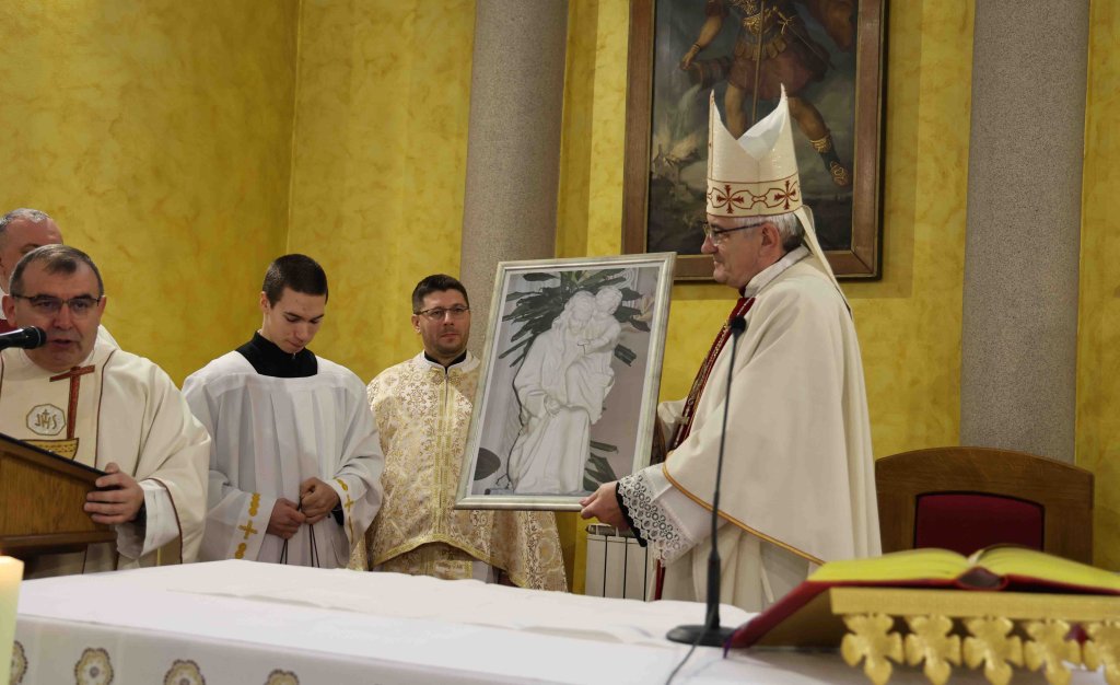 U znak zahvale za po prvi puta predvođenje misnoga slavlja župnik Cindori uime je župe biskupu Majiću darivao sliku Gospe Brze Pomoći.