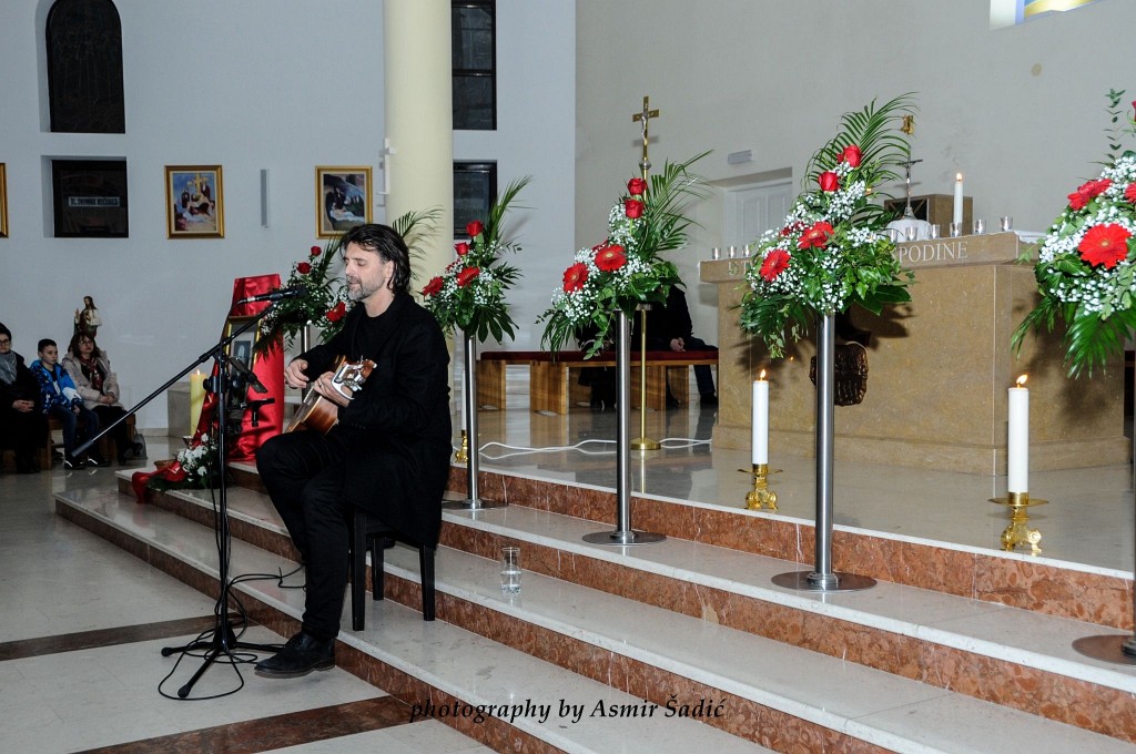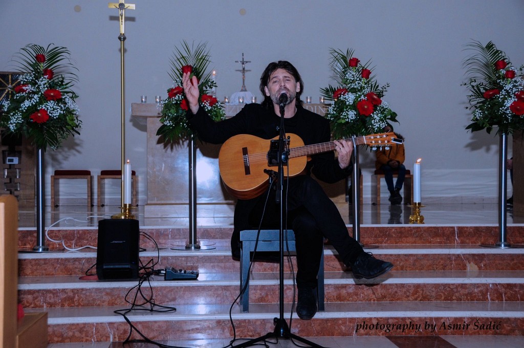 Koncert je otvorio izvedbom pjesme “Oče naš”, za koju je skladao glazbu, a izveo ju je na Isusovom materinjem jeziku, izvornom aramejskom. Potom su se nizale poznate skladbe s njegovog prvog kantautorskog albuma iz 2021. godine “Moja Hridino”, psalam 18 i psalam 23 “Gospodin je pastir moj, ni u čemu ja ne oskudijevam” i pjesme “Dotakni me Isuse”, “Nebo ljubavi”, “Obećana Djevica”, “Hvalospjeva Bogu”, “Krist na žalu” itd., i to uz ovacije, buran pljesak oraških vjernika i vjernika okolnih župa te grada Županje.
