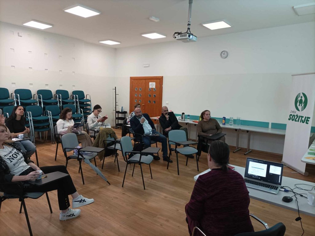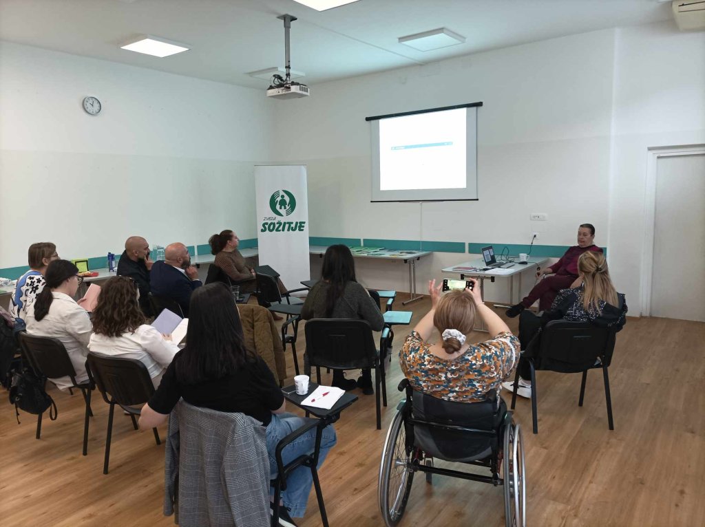 Prvog dana studijskog posjeta održan je sastanak s udrugom Unija Sožitije. Društvo Suživot je samostalna, nestranačka, neprofitna i dobrovoljna organizacija sa društvenim i filantropskim ciljevima te organizacija za promicanje zajedničke i individualne skrbi o osobama s intelektualnim teškoćama, njihovim roditeljima i članovima obitelji. Savez zadruga sastoji se od društava za pomoć osobama s intelektualnim teškoćama, koja djeluju na području Republike Slovenije. Tijekom posjeta predstavljene su aktivnosti Udruge Suživot, a poseban fokus bio je na izradi materijala razumljivim jezikom za osobe s intelektualnim teškoćama i njihovoj primjeni u radu s korisnicima. Nakon posjeta Udruge Sozitia, sudionici posjeta posjetili su Caritas Slovenije, gdje su im kolege iz Caritasa predstavili programe koje provode na području humanitarnog rada, kako u Sloveniji, tako i diljem Balkana i svijeta. Caritas Slovenije poznat je kao važan akter na području humanitarne pomoći, sa širokim spektrom programa koji uključuju potporu najranjivijim skupinama.