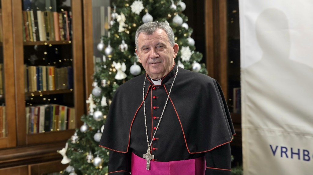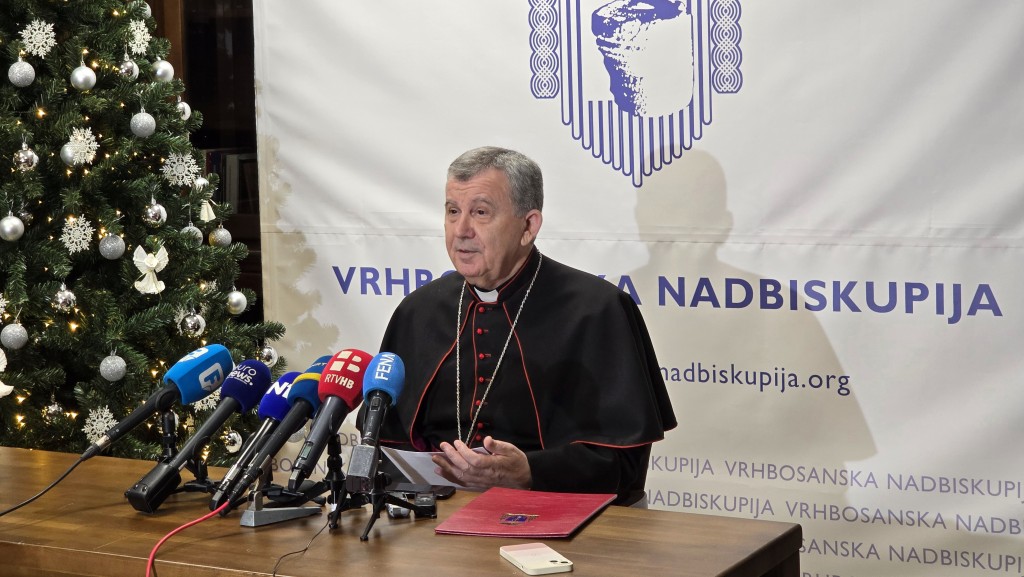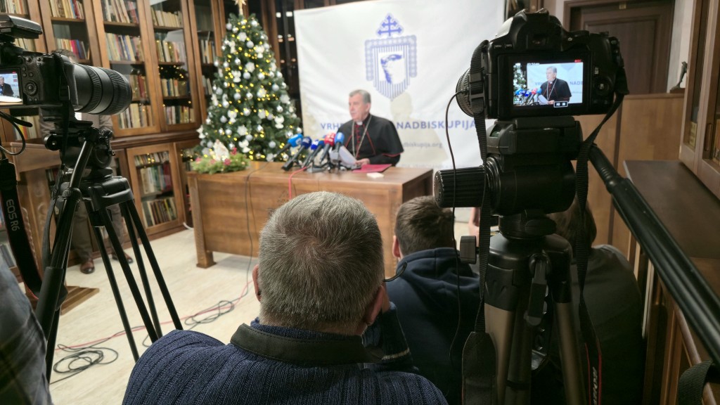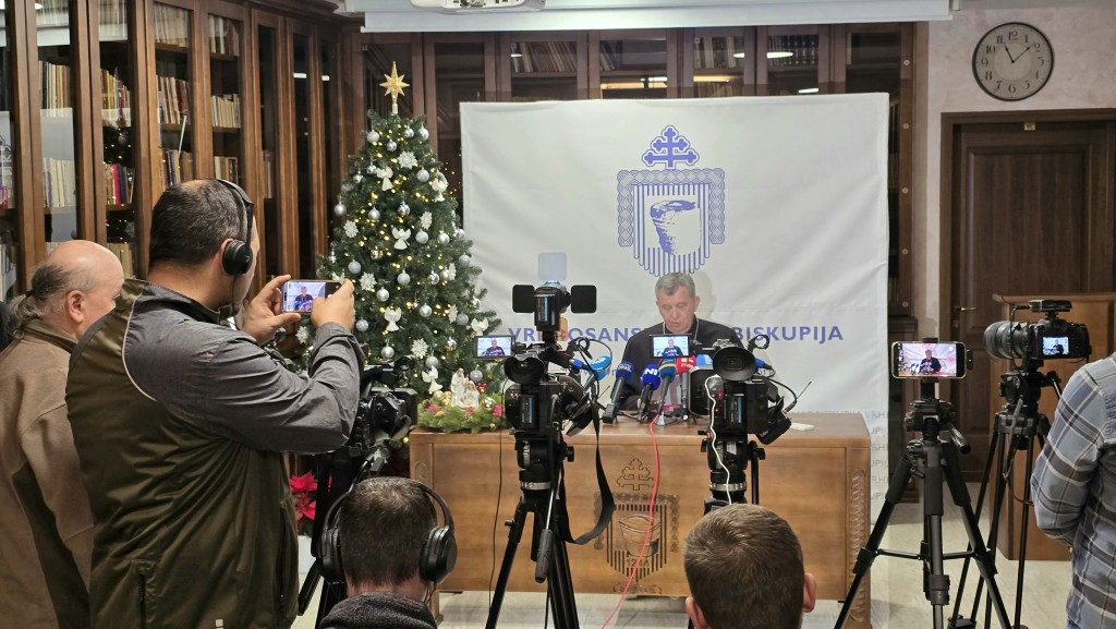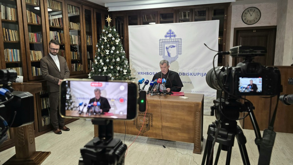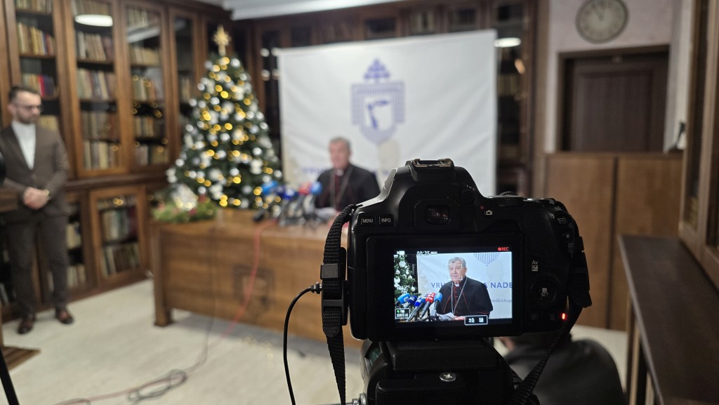 Tradicionalno snimanje božićne čestitke i konferencija za medije mons. Tome Vukšića, nadbiskupa metropolita vrhbosanskog i apostolskog upravitelja Vojnog ordinarijata u BiH, upriličena je u srijedu 24. prosinca 2025. u prostorijama Nadbiskupske rezidencije u Sarajevu.