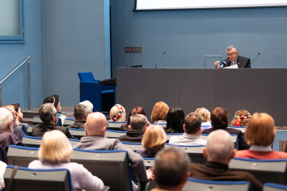 Umirovljeni vrhbosanski nadbiskup kardinal Vinko Puljić na početku svojega obraćanja zahvalio je organizatoru i pozdravio okupljene sudionike.