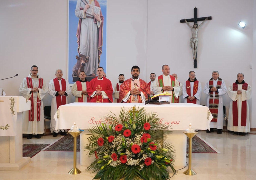 Svečano euharistijsko slavlje, kojemu je nazočilo više od 150 vjernika, predslavio je vlč. Paulo H. Coelho, župni vikar u župi sv. Majke Terezije u Vogošći i vicerektor Nadbiskupijskog misijskog međunarodnog sjemeništa Redemptoris Mater, u zajedništvu s dvanaestoricom svećenika. Među njima su bili dekan Sarajevskog dekanata i župnik na Stupu preč. Miroslav Ćavar te domaći župnik vlč. Marin Babić.