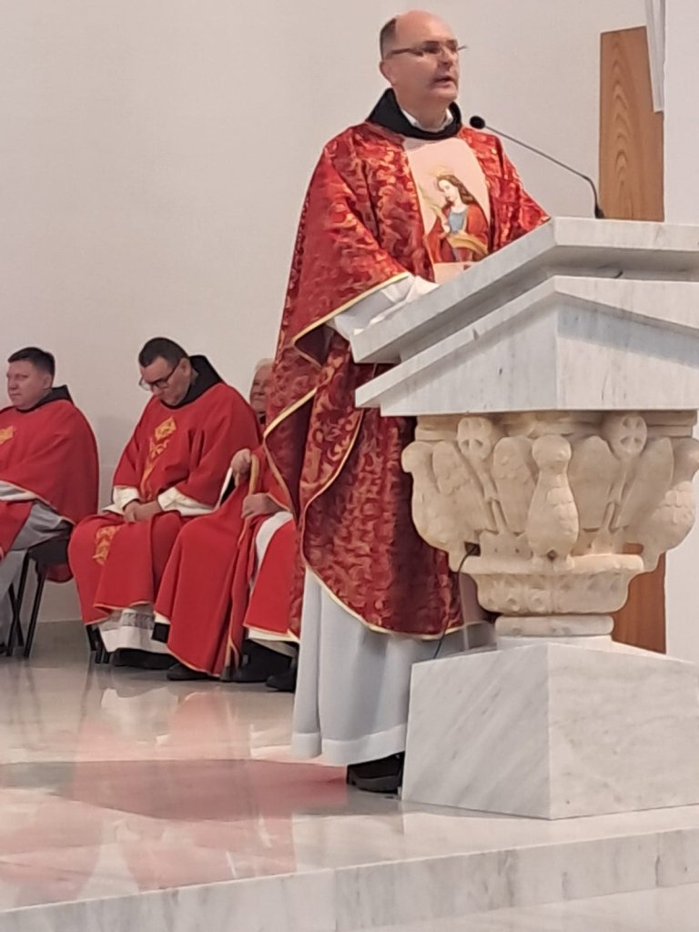 Prethodila je sveta misa koju je predslavio fra Mario Knezović, gvardijan Franjevačkog samostana svetog Petra i Pavla u Mostaru. U prigodnoj propovijedi fra Mario je podsjetio da je sv. Katarinu, pored čvrste vjere, krasila i mudrost i ljepota. Poručivši okupljenim vjernicima da su oduvijek postojali sveci i grešnici, mučenici i izdajnici, primijetio je da je u povijesti bilo i težih razdoblja, ali da je današnje za njih svakako izazovno jer u njemu žive. Posvijestio je stoga da je bitno „znati tko smo mi u današnjem vremenu, kao što je sveta Katarina znala tko je i komu vjeruje“. Završavajući svoju propovijed fra Mario se posebno osvrnuo na uzroke propasti današnjeg svijeta, spomenuvši ratove koji se vode „protiv duše, protiv žene, majke i obitelji“, te istaknuo da se lik žene i majke na osobit način štuje u hrvatskom narodu, o čemu - kako je kazao - svjedoče brojna marijanska svetišta Crkve u Hrvata.
